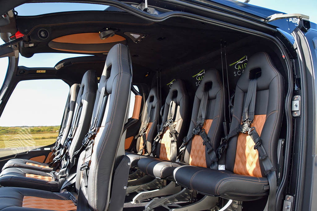 Brand new H130 completed by Pacific Crown Helicopters and delivered to a New South Wales based customer. This pristine T2 boasts a 7 seat Corporate interior. The cabin features carpet flooring, suede back wall with logo embroidery and a suede roof cover with leather inserts.